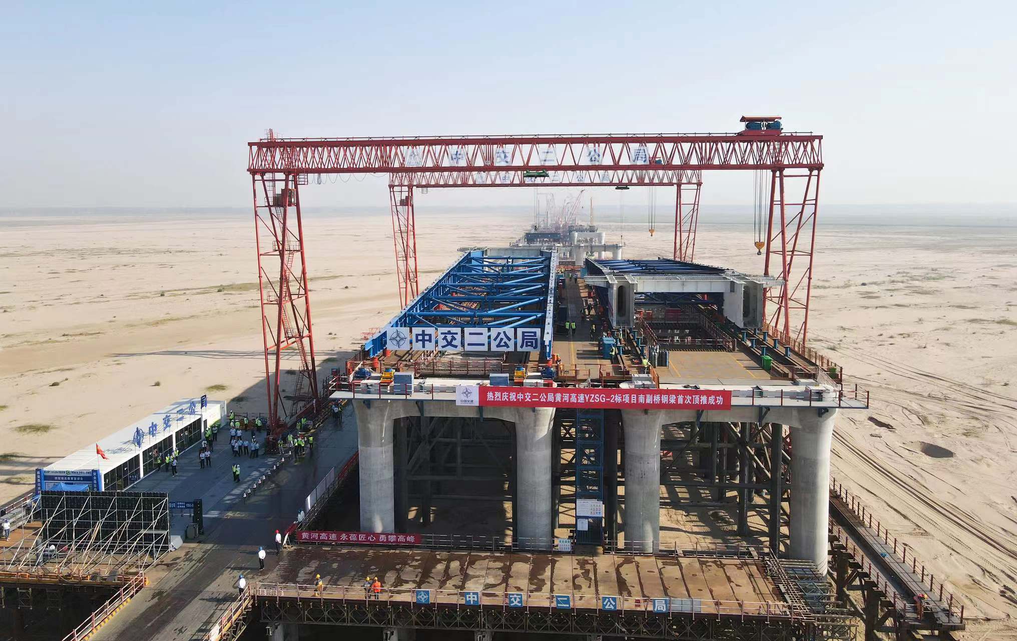 9月29日,在安羅高速原陽至鄭州段項目黃河特大橋施工現(xiàn)場傳來好消息,重達260多噸的南副橋首節(jié)鋼箱梁及導梁向著線路大里程方向開始頂推,標志著安羅高速黃河特大橋正式啟動上部結(jié)構(gòu)施工。