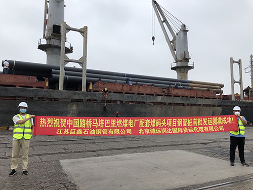 2020年6月2日,在江蘇巨鑫石油鋼管有限公司海工基地碼頭,由巨鑫鋼管為中國路橋工程有限責(zé)任公司孟加拉蒙塔巴瑞電廠碼頭項目制造的首批118支鋼管樁,在專業(yè)工程物流北京誠遠(yuǎn)潤達(dá)國際貨運代理有限公司的承運下順利發(fā)運。